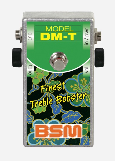 The DM-T is based on the Germanium fitted Winston Treble Booster circuit made in England in the late 60's. You can dial between a tight bass-cut and a fat midrange/treble sound with a BSM special developed control. A very versatile booster.