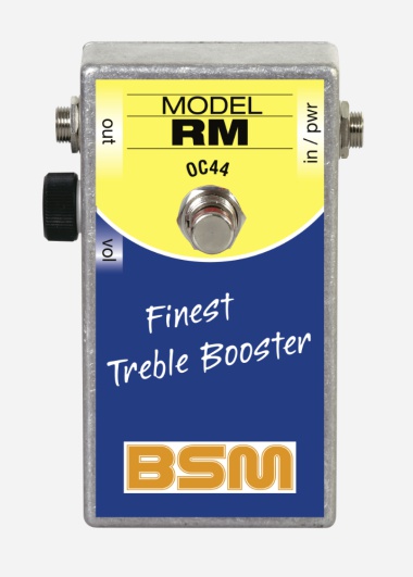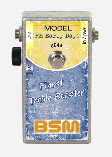The RM model is based on the British Range Master unit, loaded with a original OC44 Germanium transistor, produced between 1965 and 1969, as used by Eric Clapton in John Mayall’s Bluesbreakers, Brian May in early Queen and early Rory Gallagher.
